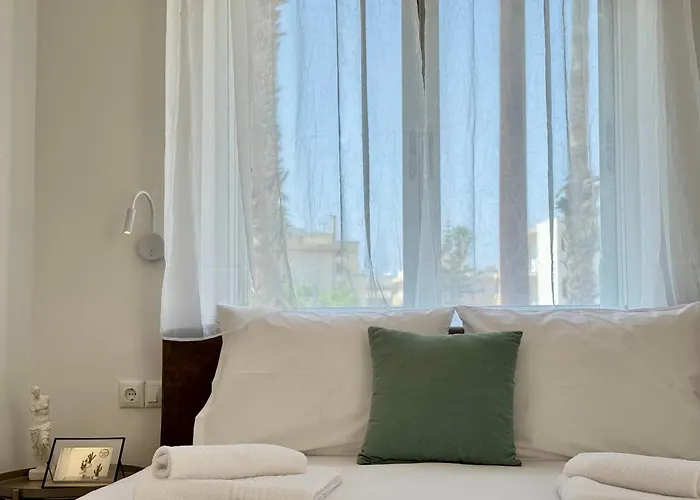 A New Apartment 5Min Beach - No 8 teakonyhát biztosít azok számára, akik önellátásra vágynak. Az egészséges ételeket készítő Zamagias Bakery hozzávetőlegesen egy 5 perces sétára található az apartmantól. A Paidikos Stathmos buszmegálló mindössze 400 méter távolságra fekszik.